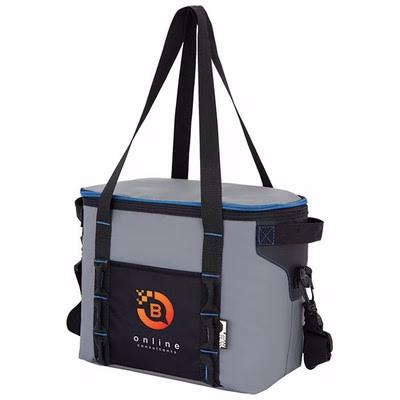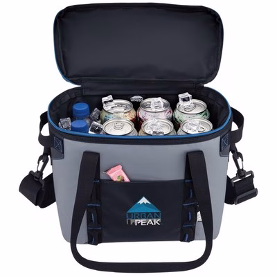 For added convenience, the Urban Peak 12-Can Cooler includes front daisy chains for attaching accessories and an elastic-secured stainless steel bottle opener, ensuring you’re always prepared to enjoy a cold drink. Blue zipper and stitch accents add a modern, sporty look that complements custom branding.