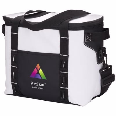 Crafted from matte PVC mesh tarpaulin, this cooler is tough, water-resistant, and easy to clean. Functional design details include a removable and adjustable shoulder strap for comfortable carrying, side handles for quick grab-and-go transport, and a front slash pocket made with rugged 840D fabric for storing small essentials.